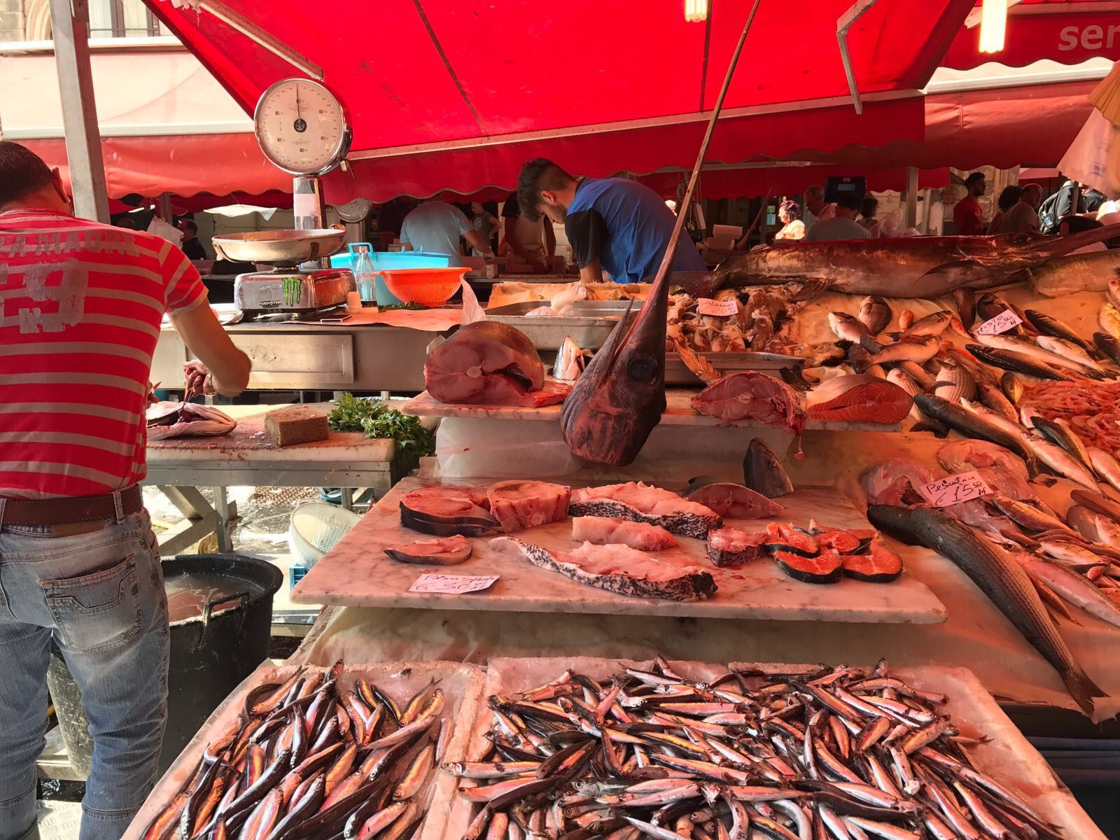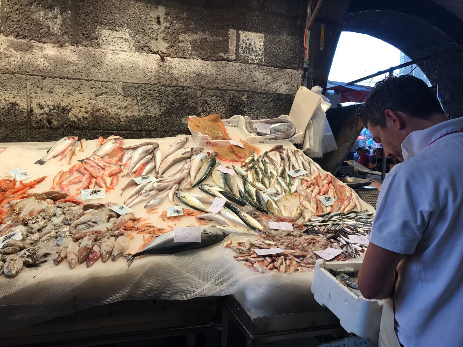 Het weer was gelukkig zoals ik gewend was: zonnig en warm. Daarom bezochten wij de vismarkt van Catania. Binnenkort verschijnt er nog een uitgebreidere blog over de vismarkt in Catania. De vismarkt is een hele beleving. Het leuke van de vismarkt is dat het niet mooier wordt gemaakt voor toeristen en is dus heel rommelig en chaotisch. Je bevindt je dus echt tussen de Locals. Nadat we fruit hadden gescoord bij verschillende kraampjes zijn we door Catania gaan struinen als echte toeristen. ’s Avonds zijn wij uit eten geweest bij mijn lievelings-restaurant in Via Etnea en natuurlijk nam ik weer Spaghetti aglio é olio. (want die is zooooooo lekker). We genoten van de live muziek en het lekkere eten en zijn daarna nog gestrand bij een terrasje waar we hebben genoten van (hele sterke) cocktails.