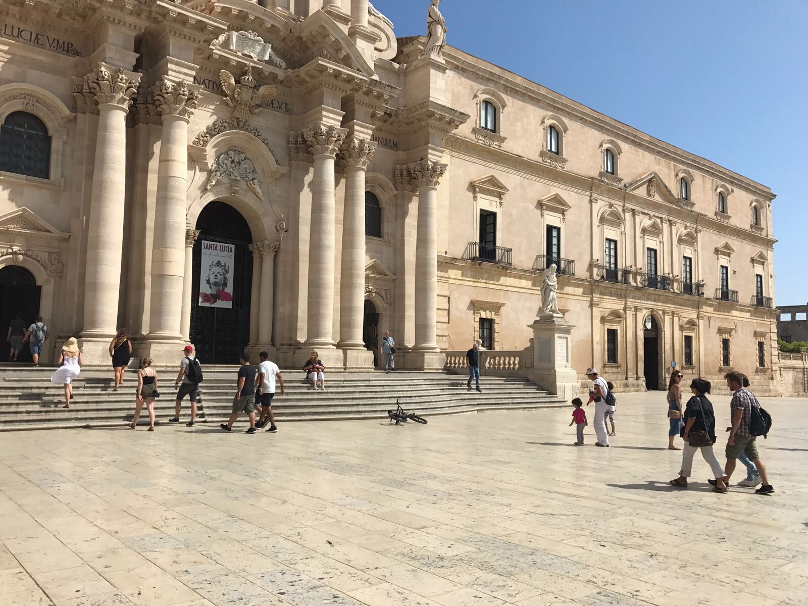 Op zondag werd ik uit bed geduwd door Tom. Ik was kapot na een drukke week op werk en twee avonden cocktails drinken. Maar Syracuse stond op de planning! Dus al mompelend toch maar mijn bed verlaten om mij klaar te gaan maken. We hebben een uur moeten wachten op de bus naar Syracuse ( die ongeveer 9,- kost voor een retourtje p.p). Gelukkig zat er bij het busstation een cafeetje waar we cappuccino hebben gedronken ( het mocht nog, het was nog geen 11.30) De bus reis naar Syracuse was ongeveer anderhalf uur. Toch wel handig om met je vriend op pad te gaan. Zo kon hij mijn hoofd vasthouden de hele reis zodat mijn hoofd niet naar voren viel toen ik in slaap viel. 😉  Syracuse was werkelijk waar prachtig!!