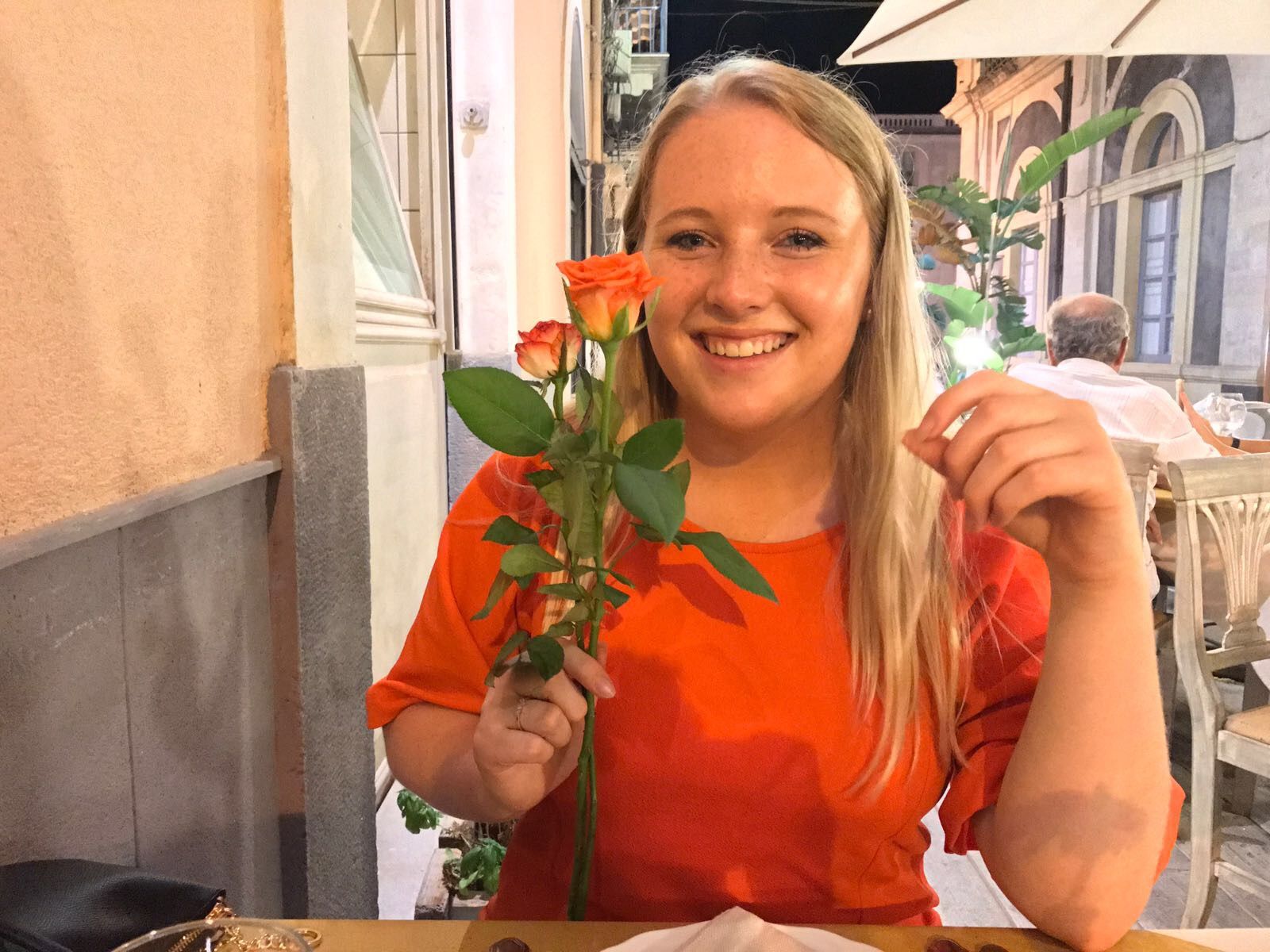Vandaag was heerlijk rustig op werk, dus ik heb mij goed bezig kunnen houden met verschillende blogs. Dus houd mijn website goed in de gaten want er komt een blog aan over de vismarkt van Catania en het beste typische Siciliaanse eten wat je moet proberen! Ook heb ik mijn Italiaans weer verbeterd met de online cursus van Erasmus. Toen ik om 19:00 thuis kwam had ik een mini weekend  omdat ik de woensdag vrij had genomen voor mijn verjaardag! We vertrokken na het eten en na de wasserette ( Tom weet nu dat hij mij niet zo leuk vind als ik de was doe hihi) naar de stad en genoten van live muziek en een lekker drankje toen ik 20 werd ! Wat is het toch mooi om jarig te zijn in zo’n prachtig land en om dat ook nog te kunnen vieren met je vriend. We waren tegen 03:30 pas thuis en vielen ook als een blok in slaap.