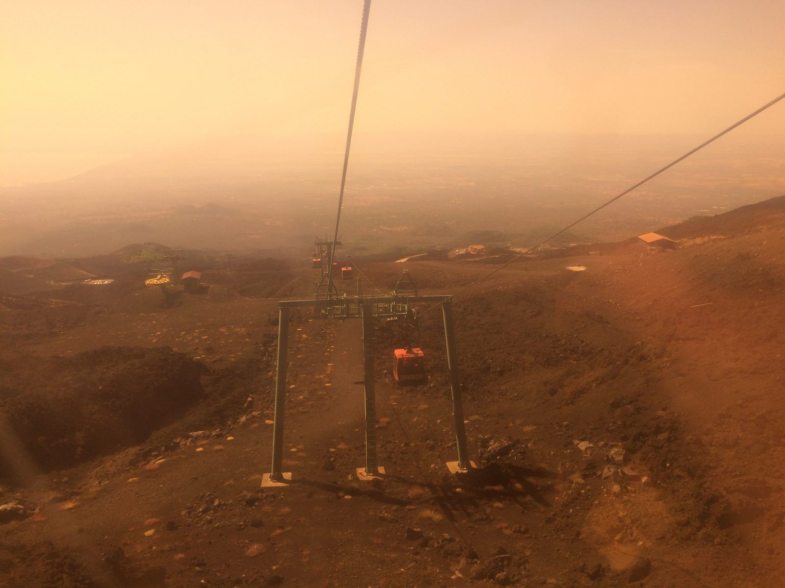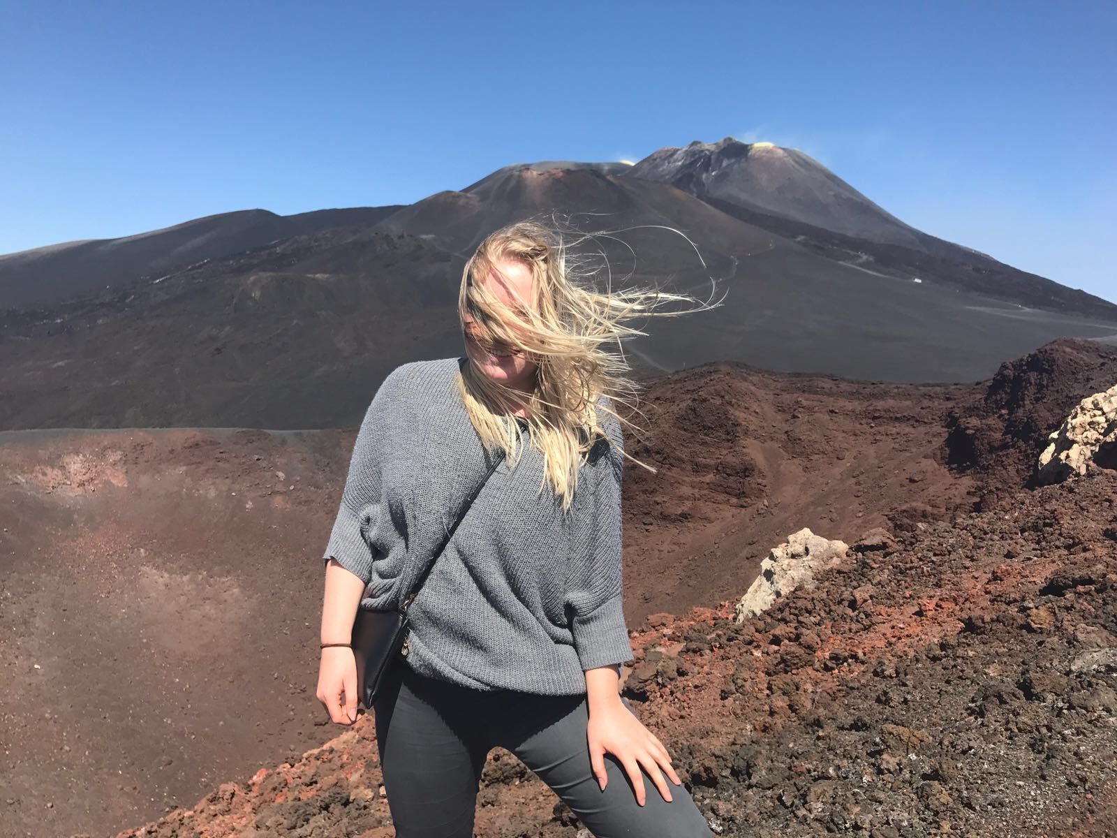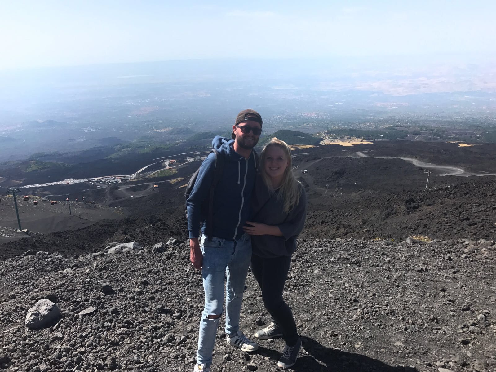 Zondag, de laatste dag dat  Tom  in Catania zou zijn. Hij had de Etna nog niet bezocht sinds zijn verblijf hier, dus we besloten om onze dag te besteden boven op de vulkaan. Het is lastig om de Etna te bereiken als je geen 55,- wil besteden aan een toeristische tourbus. Er gaat maar één normale bus richting de Etna per dag en deze is om 08:00 ’s ochtends vanaf de bushalte bij het treinstation van Catania. Dus om 07:00 liepen Tom en ik door een hele stille stad. Ik was zo verschrikkelijk moe en ben zodra we de bus in kwamen ook weer in slaap gevallen. ( ja ik reis graag met ogen dicht haha) We kwamen rond een uur of 10.00 aan bij de grote parkeerplaats op de Etna. Hier hebben we koffie gedronken en daarna besloten we om toch de kabelbaan omhoog te nemen. De vorige keer dat ik op de Etna was ben ik zelf een stuk omhoog gelopen. We betaalden 30,- per persoon om met de kabelbaan omhoog te gaan. Ontzettend duur als je het mij vraagt, maar het is prachtig daar boven! Oh, en ontzettend koud, dus kleed je warm aan. We zaten na de kabelbaan op ongeveer 2500 m hoogte en zijn zelf nog 500 m omhoog gelopen. (lees geklommen). Ik heb heel erg last van hoogte verschil en word dan ook snel duizelig en kortademig als ik zo hoog zit. Het waaide zo hard op de top dat ik bang was dat ik weggeblazen zou worden. Maar wat was het prachtig! Je hebt echt het gevoel dat je ‘on top of the world’ staat. Ik kreeg hele erge hoofdpijn dus we zijn weer naar beneden gelopen naar een restaurant om wat te drinken. Mijn hoofdpijn werd met de seconde erger maar Tom wilde nog graag een stuk lopen dus ik bleef alleen in het restaurant om tot rust te komen. Nou dat deed ik echt want ik viel in slaap midden in het restaurant aan een tafel. Ik weet nog goed het moment dat ik wakker werd gemaakt door een stelletje dat bij mij aan tafel kwam zitten en dat er werd gevraagd of het goed ging. Nou ik heb mij zo erg geschaamd haha. Toen Tom terug kwam van zijn klim hebben we de kabelbaan weer naar beneden genomen, hier hebben we nog souveniertjes gekocht en de rest van de tijd op het terras gezeten. De bus reed om 16.30 weer terug naar Catania. ik vond dit net iets te lang en raad jullie ook aan om een auto te huren als je de zuidkant van de Etna bezoekt.