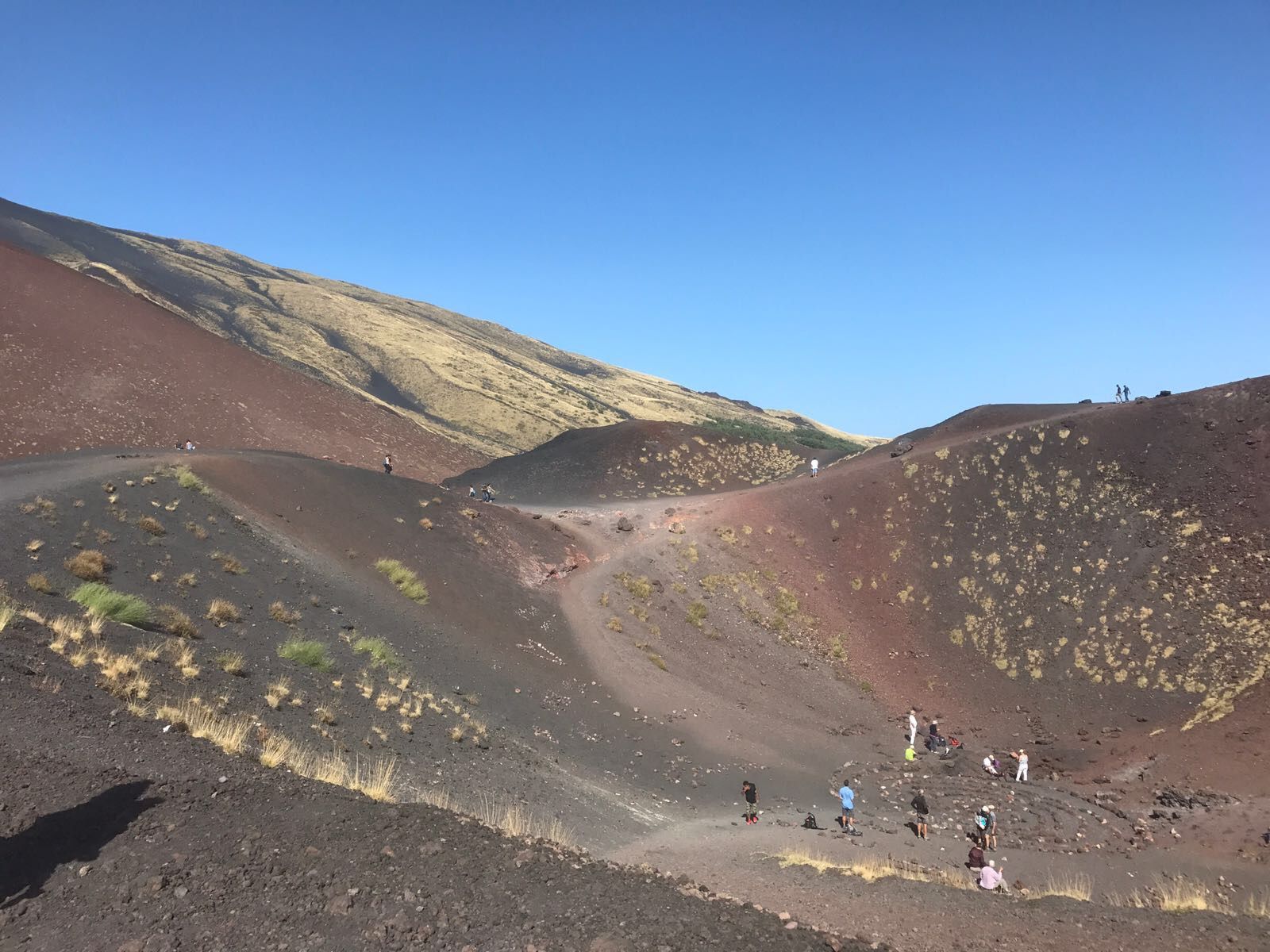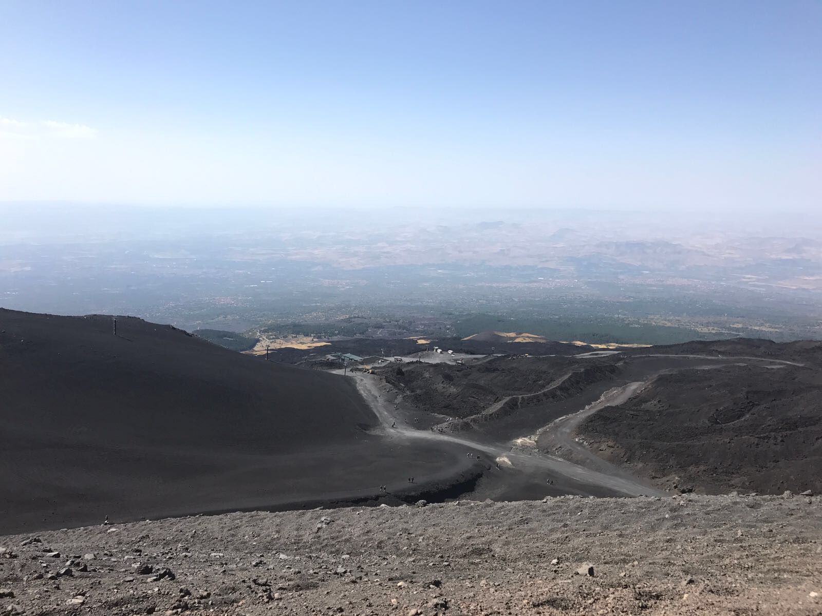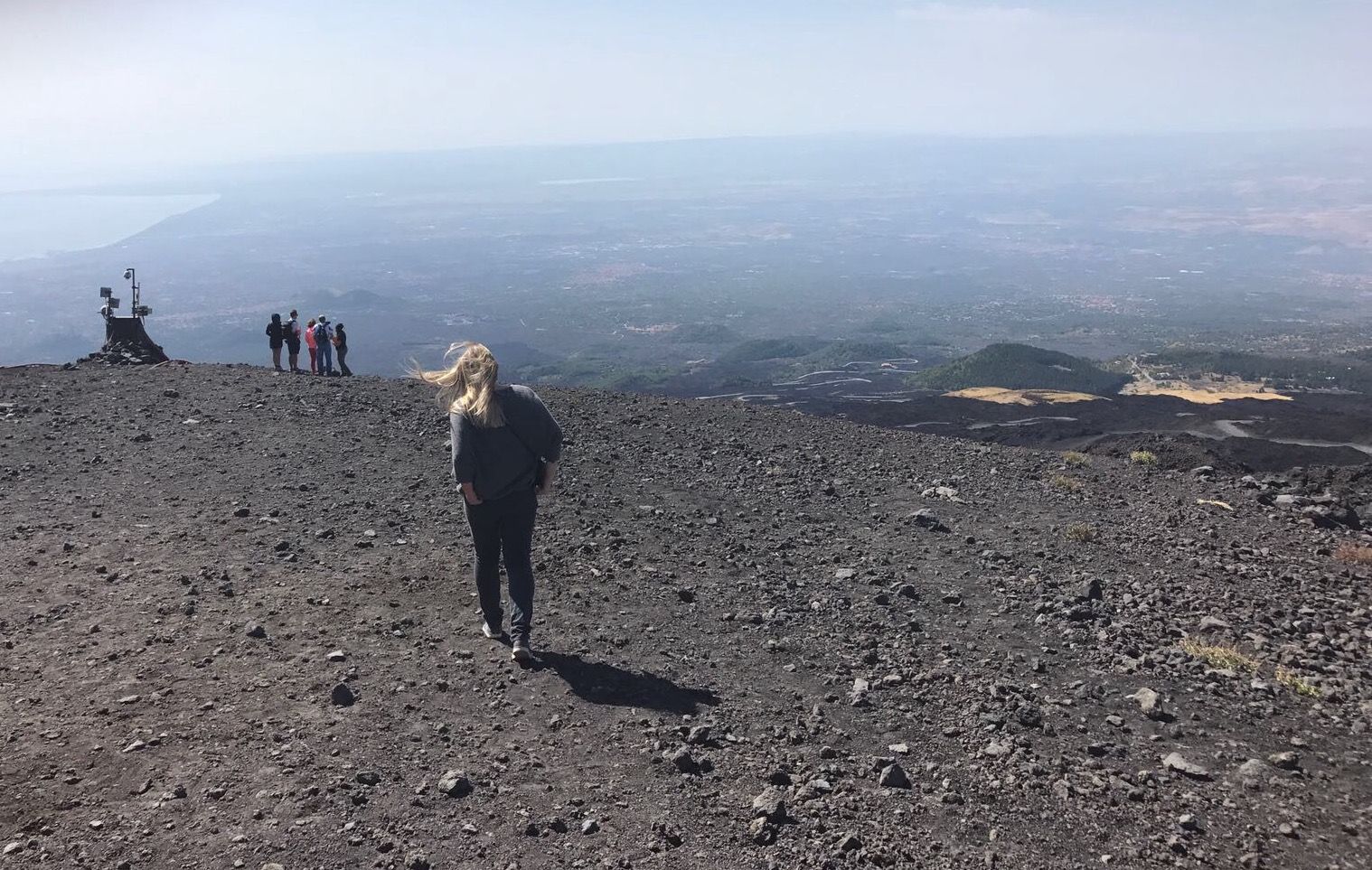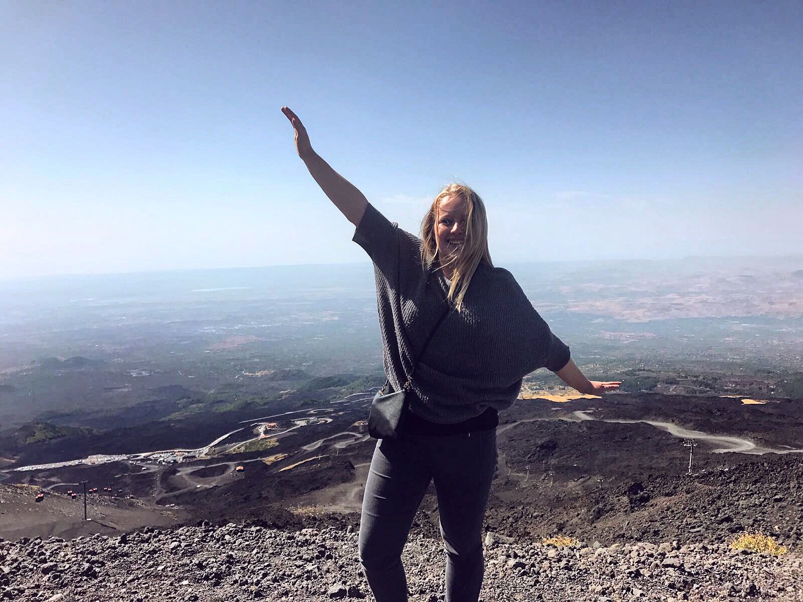 Zondag, de laatste dag dat  Tom  in Catania zou zijn. Hij had de Etna nog niet bezocht sinds zijn verblijf hier, dus we besloten om onze dag te besteden boven op de vulkaan. Het is lastig om de Etna te bereiken als je geen 55,- wil besteden aan een toeristische tourbus. Er gaat maar één normale bus richting de Etna per dag en deze is om 08:00 ’s ochtends vanaf de bushalte bij het treinstation van Catania. Dus om 07:00 liepen Tom en ik door een hele stille stad. Ik was zo verschrikkelijk moe en ben zodra we de bus in kwamen ook weer in slaap gevallen. ( ja ik reis graag met ogen dicht haha) We kwamen rond een uur of 10.00 aan bij de grote parkeerplaats op de Etna. Hier hebben we koffie gedronken en daarna besloten we om toch de kabelbaan omhoog te nemen. De vorige keer dat ik op de Etna was ben ik zelf een stuk omhoog gelopen. We betaalden 30,- per persoon om met de kabelbaan omhoog te gaan. Ontzettend duur als je het mij vraagt, maar het is prachtig daar boven! Oh, en ontzettend koud, dus kleed je warm aan. We zaten na de kabelbaan op ongeveer 2500 m hoogte en zijn zelf nog 500 m omhoog gelopen. (lees geklommen). Ik heb heel erg last van hoogte verschil en word dan ook snel duizelig en kortademig als ik zo hoog zit. Het waaide zo hard op de top dat ik bang was dat ik weggeblazen zou worden. Maar wat was het prachtig! Je hebt echt het gevoel dat je ‘on top of the world’ staat. Ik kreeg hele erge hoofdpijn dus we zijn weer naar beneden gelopen naar een restaurant om wat te drinken. Mijn hoofdpijn werd met de seconde erger maar Tom wilde nog graag een stuk lopen dus ik bleef alleen in het restaurant om tot rust te komen. Nou dat deed ik echt want ik viel in slaap midden in het restaurant aan een tafel. Ik weet nog goed het moment dat ik wakker werd gemaakt door een stelletje dat bij mij aan tafel kwam zitten en dat er werd gevraagd of het goed ging. Nou ik heb mij zo erg geschaamd haha. Toen Tom terug kwam van zijn klim hebben we de kabelbaan weer naar beneden genomen, hier hebben we nog souveniertjes gekocht en de rest van de tijd op het terras gezeten. De bus reed om 16.30 weer terug naar Catania. ik vond dit net iets te lang en raad jullie ook aan om een auto te huren als je de zuidkant van de Etna bezoekt.
