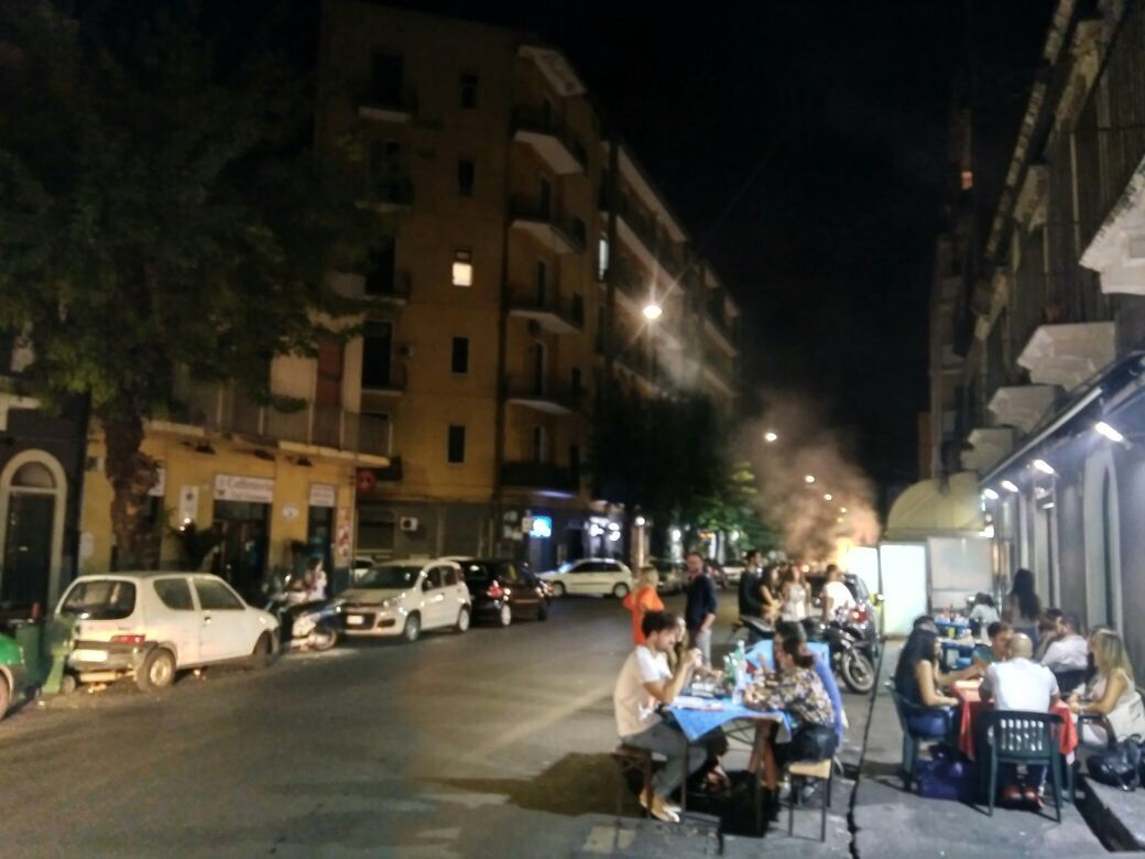 Tom en ik werden mee uit eten gevraagd door mijn baas. Dit omdat de Spaanse Erasmus student terug gaat naar Spanje, ik nieuw ben in het bedrijf, en mijn andere collega haar toets heeft gehaald.  We spraken om 22.00 af in de stad. We liepen naar een straat buiten het centrum; Via Plebiscito. Dit was super leuk want het was hier absoluut niet toeristisch. De hele straat stond vol met rook omdat het eten op straat werd bereid. Als er geen tafel vrij was werden ze wel ergens vandaan geplukt en erbij gezet op straat. Een hele beleving om je zo tussen de locals te bevinden. Ook begint het dineren pas tegen een uur of 22.00/22.30. en het nagerecht wordt zo tegen 00.30 uitgeserveerd. Via Plebiscito is zeker een straat die je moet bezoeken als je je wil bevinden tussen de echte locals en wil genieten van het heerlijke eten wat de Sicilianen je te bieden hebben.