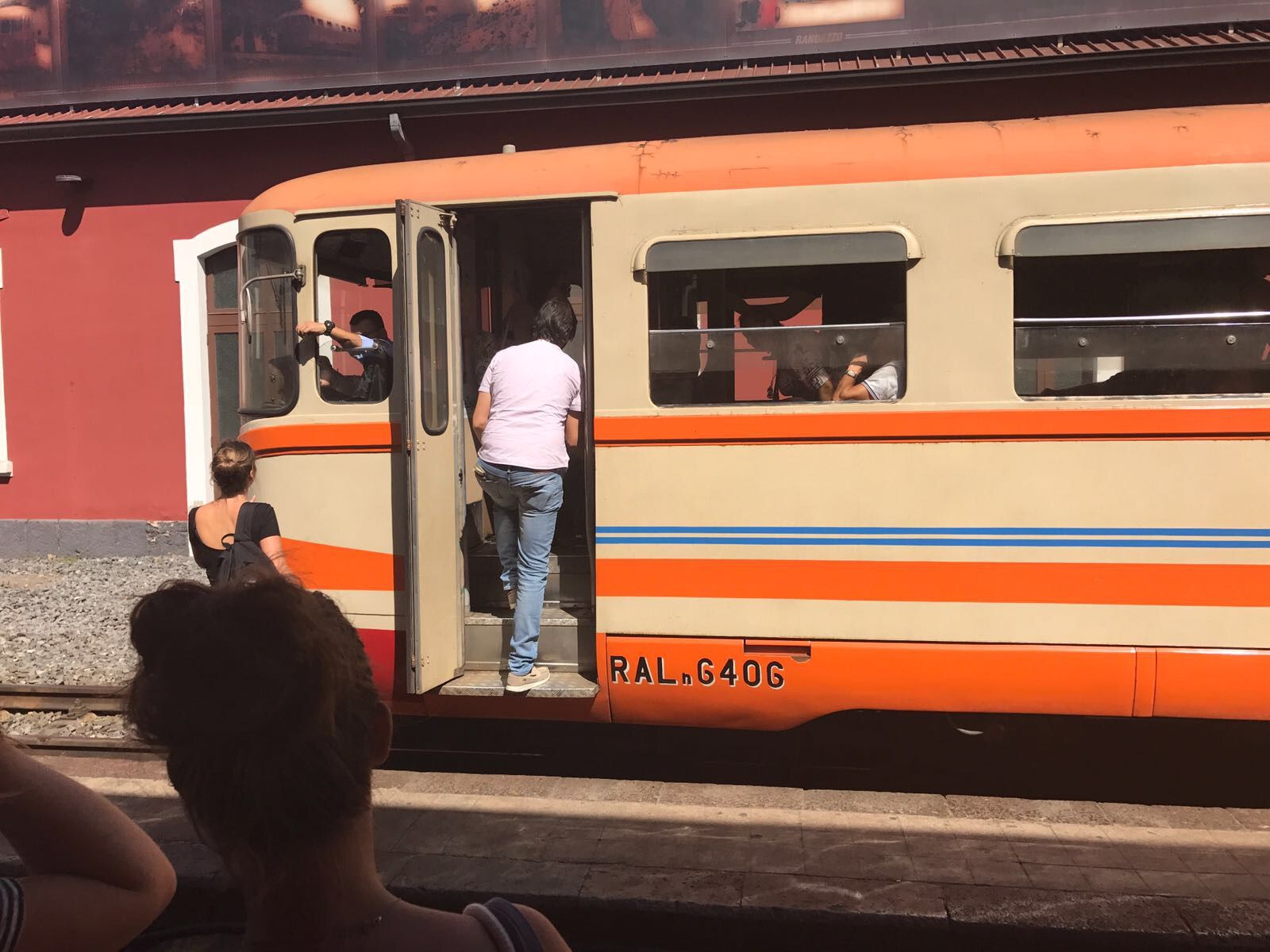 Op zaterdag besloten Tom en ik dat we nog niet genoeg geld hadden uit gegeven afgelopen week. We namen de circumetnea naar het winkelcentrum Etnapolis. De circumetnea is een klein ouderwets treintje die (zoals de naam al zegt) rond de etna gaat. De trein vertrekt ongeveer om het uur vanaf treinstation Borgo, wat 3 minuten lopen is vanaf mijn appartement. Voor een snel vervoer raad ik dit treintje niet aan, maar als je geen haast hebt ( zoals de meeste Sicilianen hier) is het zeker een hele beleving. Je rijdt over een super dun spoor en je rijdt door het vruchtbare landschap van de Etna. Ik heb de hele route nog niet gevolgd maar ik zou dit wel snel willen proberen. De prijs van het treinkaartje gaat per km dus je rekent uit hoeveel km het is naar je bestemming ( Google maps 😉 ) en betaalt voor die hoeveelheid kilometers. Wij betaalden voor een retourtje 4,10 per persoon en reden ongeveer 10 km heen en 10 km terug. Dit winkelcentrum heeft niet echt charme van een gezellig dagje uit, maar je kunt er wel goed terecht voor winkels die niet te vinden zijn in Catania centrum.