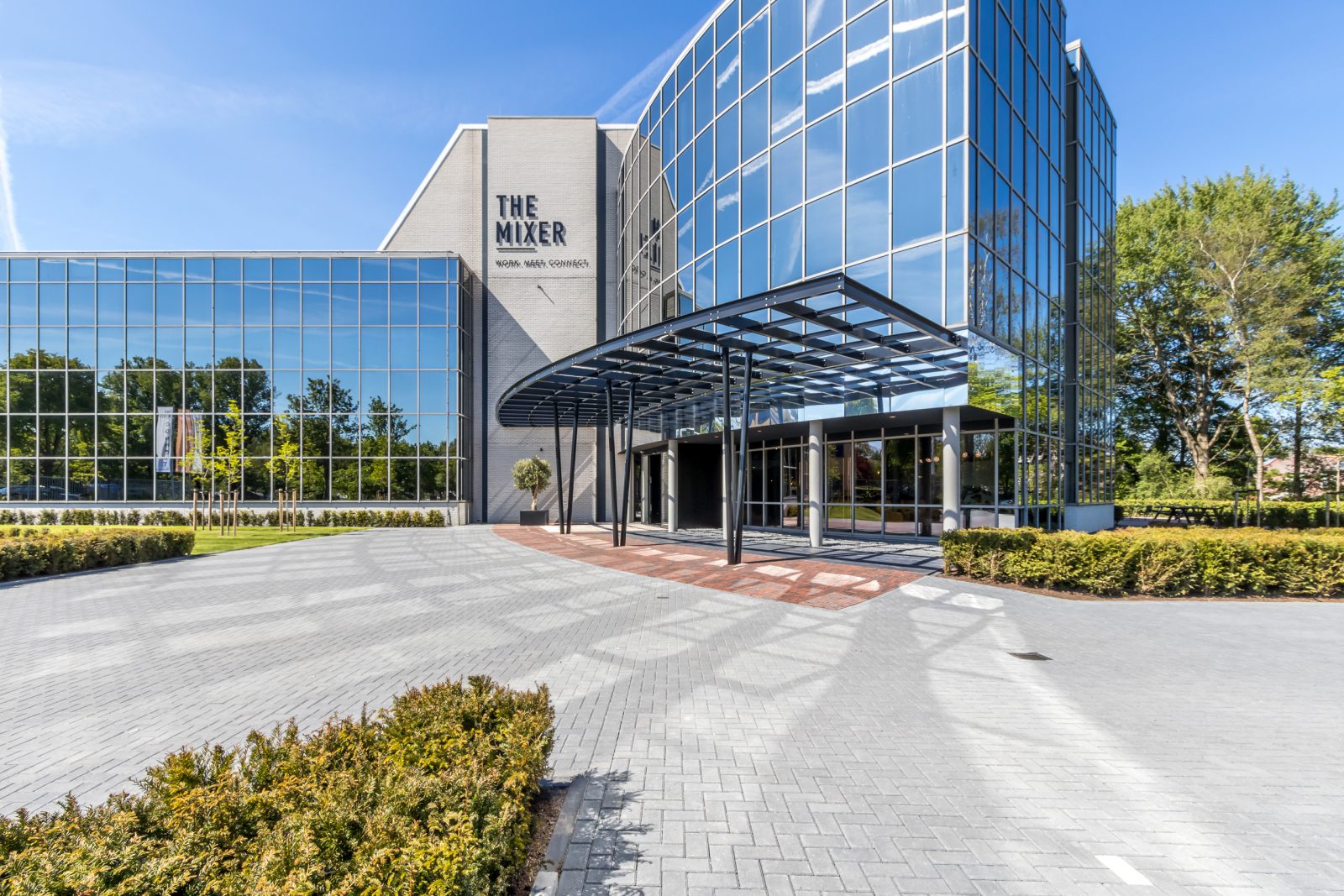 Interieurontwerp The Mixer. Het pand is niet alleen een eye catcher vanaf de buitenkant. Sinds kort is de binnenkant ook een place to be! Kantoorunits, vergaderruimtes, een tuin en brasserie! De afgelopen maanden hebben we met een team van vakmensen keihard gewerkt om een mooi resultaat neer te zetten! En nu kan ik het eindresultaat met jullie delen.