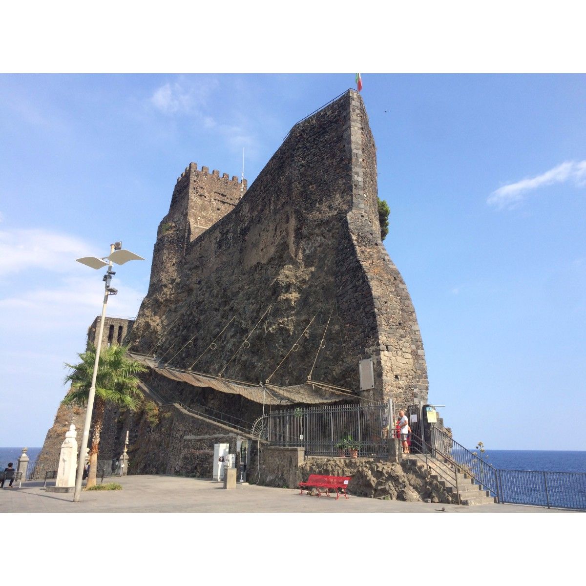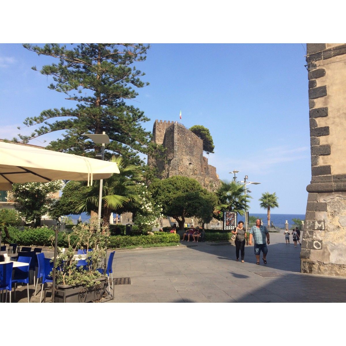 Op dinsdag besloten we om het openbaar vervoer een tweede kans te geven en dus zo naar Taormina te reizen. Taormina wordt beschreven als het mooiste dorp van Sicilië. Zeker de moeite waard om dus heen te gaan. Helaas hadden de buschauffeurs er weer geen zin in en viel de planning in het water. Ik besloot toen om samen met mijn moeder naar Aci Castello te gaan. We liepen 20min naar het busstation en hebben onderweg genoten van een kaas/worst plankje en een koud drankje. Vanaf het busstation vroeg ik de bus chauffeur of hij stopte in Aci Castello. De beste oude man wuifde ons alleen naar binnen en hij stond erop dat we niet betaalde. Toen vroeg hij waar we heen gingen en is hij omgereden, om ons af te zetten recht voor het kasteel. We reden gratis mee met een bus en werden midden op de weg afgezet. Zoiets gebeurd echt alleen hier. Aci Castello is een leuk kleurrijk dorpje en het kasteel is prachtig & als je boven in de tuin van het kasteel staat heb je ook nog is fantastisch uitzicht! Het was in de namiddag wel erg rustig in Aci Castello. Maar een prima plek om aan de helder blauwe zee te ontspannen!